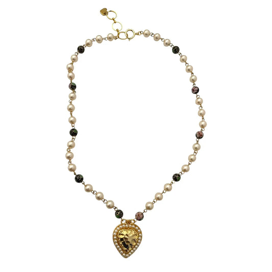 Cloisonné Pearly Heart Necklace