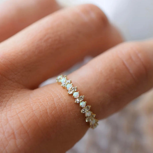 Rainbow Moonstone + Diamond Woodland Fairytale 14kt Gold Ring