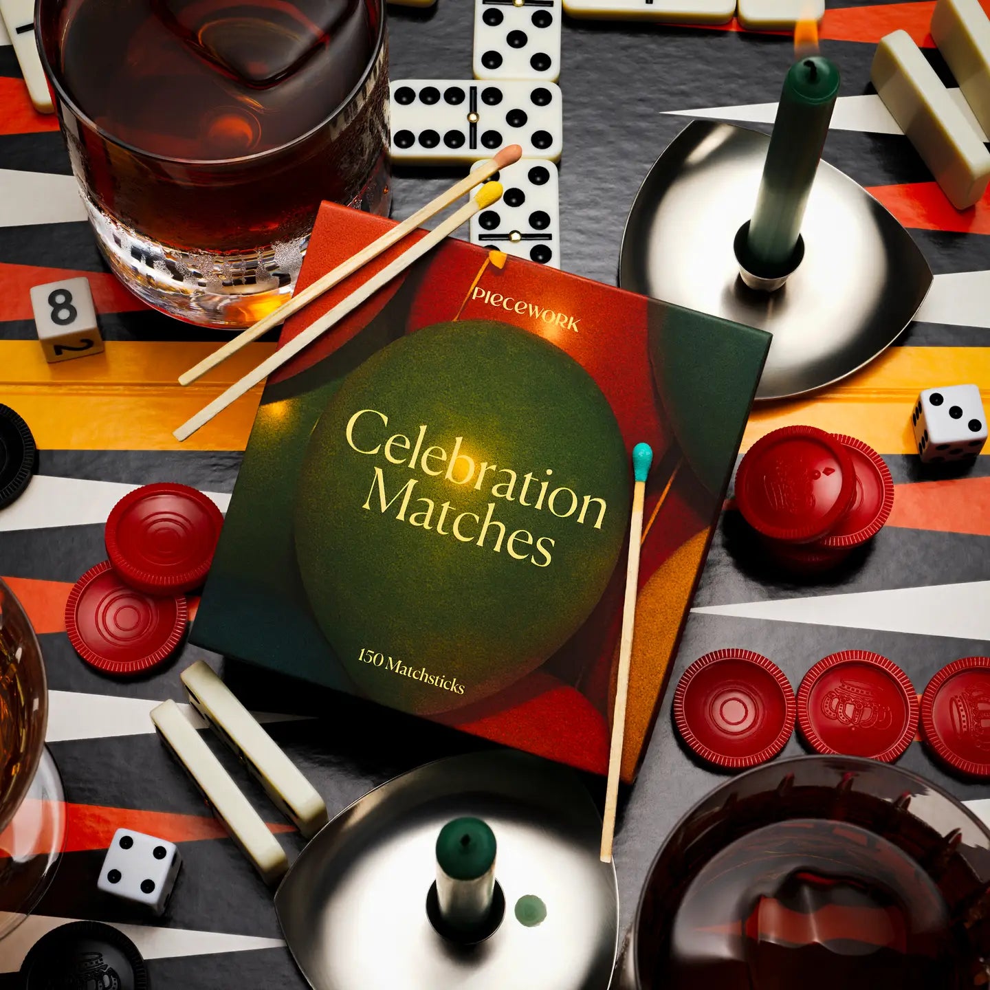 150 Celebration matches in signature soft touch packaging.