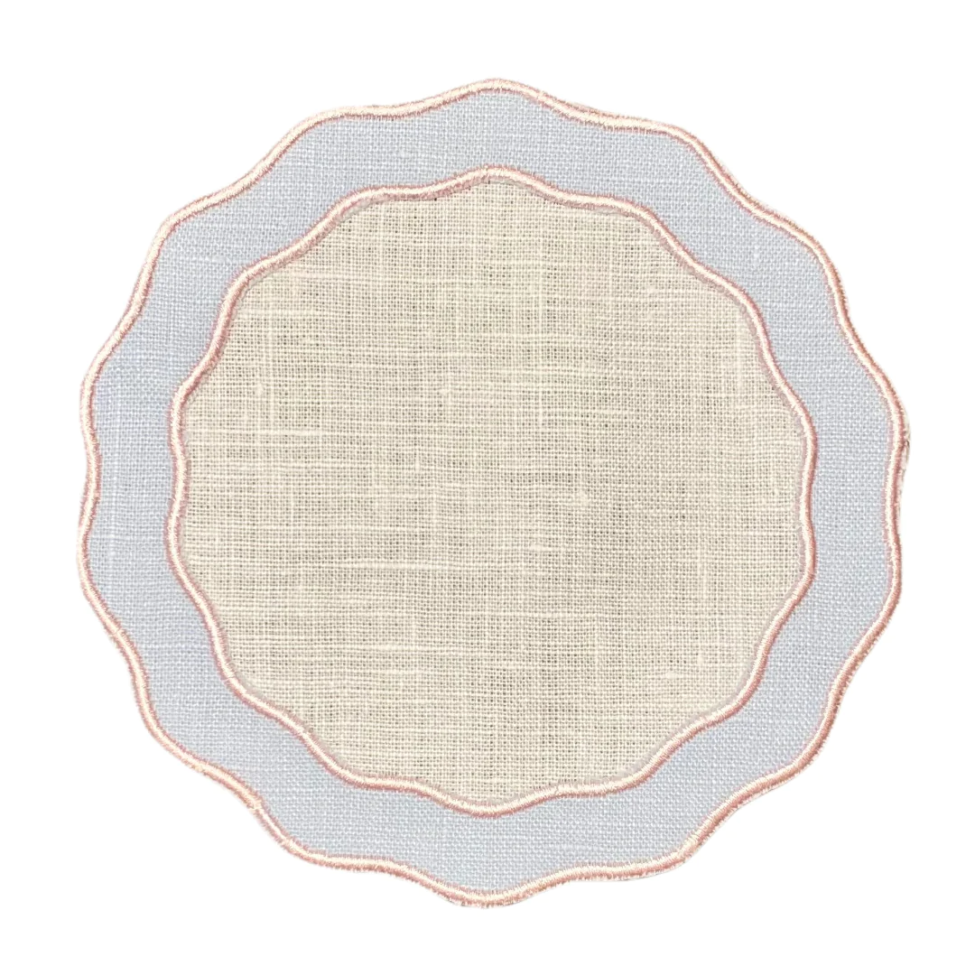 Sky Blue with Rose Round Appliqué Cocktail Napkin