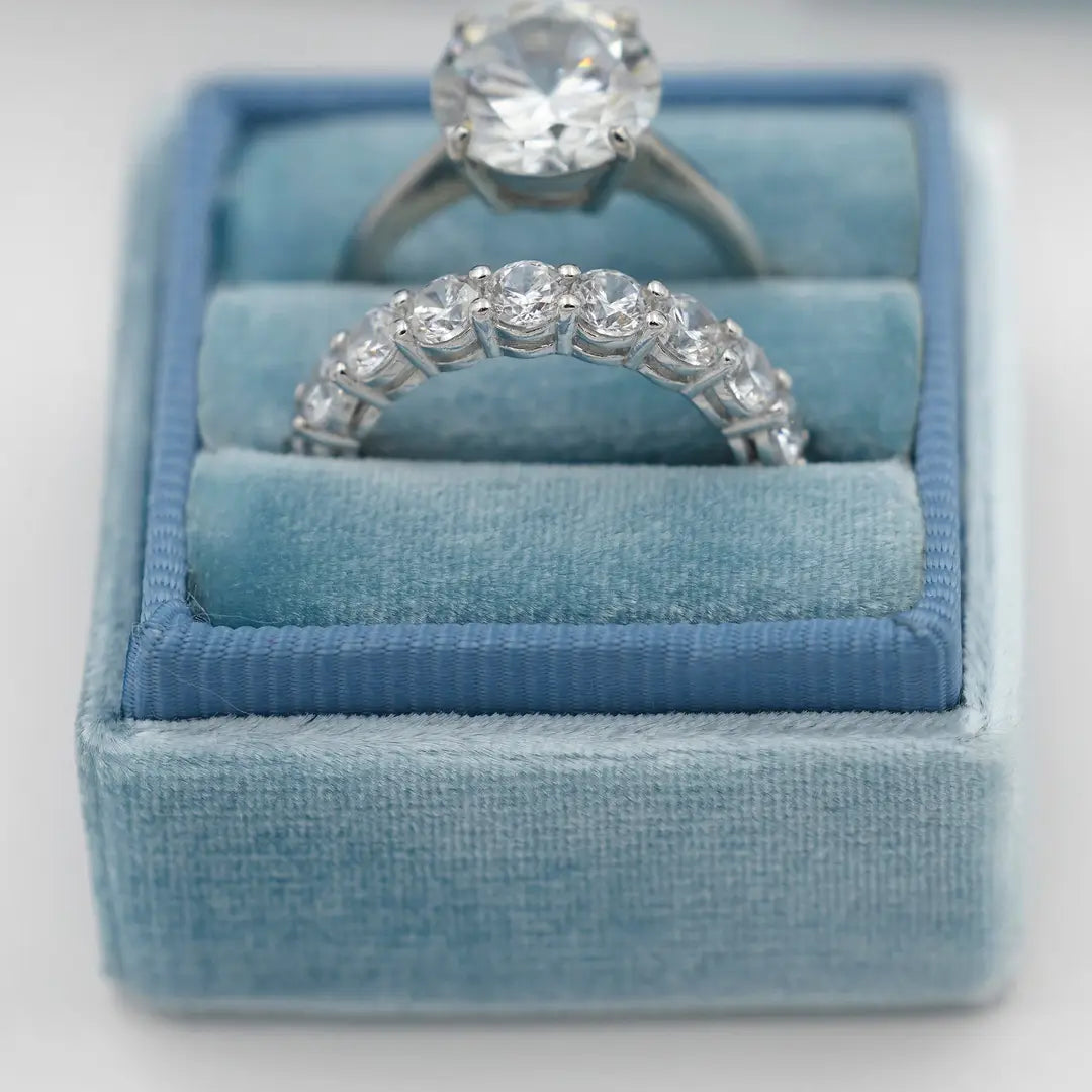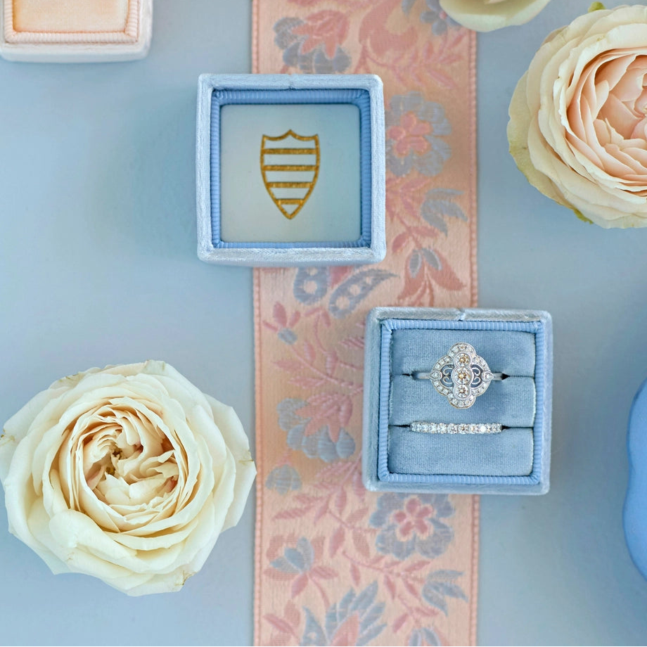 The Mrs. Boxes are purposely petite, measuring 4 cm on all sides. They are individually handmade using what we consider to be the world's most extraordinary velvet. Featuring custom colors made exclusively for us, our new boxes are so exquisite they literally sparkle in person, reflecting light in the most glorious way possible.